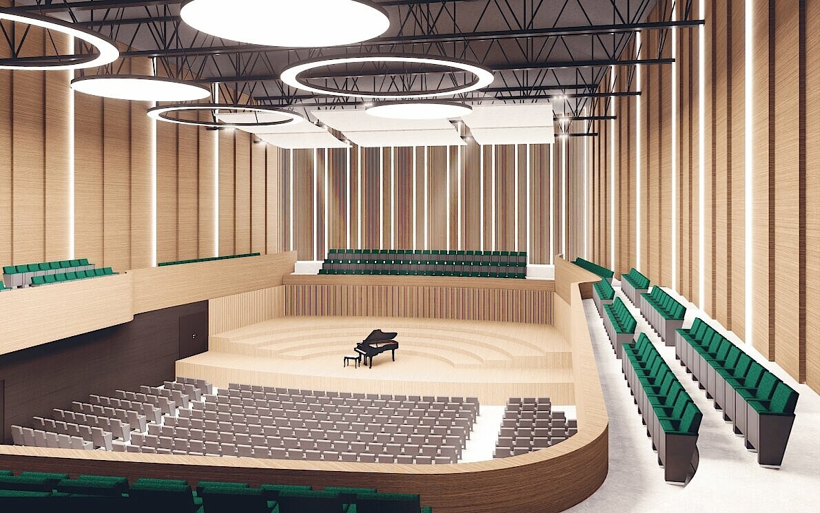 Neben einem modernen, akustisch optimalen Konzertsaal mit 1.000 Sitzplätzen und einer flexiblen Bühne, die auch die Aufführung größerer Orchesterwerke zulässt, gibt es einen Probensaal mit gleicher Bühnengröße sowie einen Veranstaltungsraum mit circa 150 Sitzplätzen.